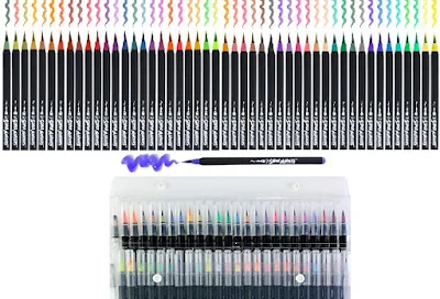 Art Coloring Markers - 48 Calligraphic Watercolor Pens